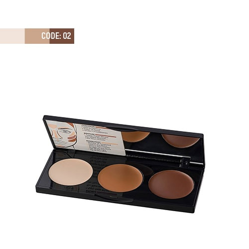 - این محصول در یک پالت شامل سه رنگ پرکاربردی برای ایجاد تیرگی و روشنی و پوشش ناهمواریهای پوست کاربرد داشته و در انواع تکنیکهای حرفهای گریم و آرایش قابل استفاده است.