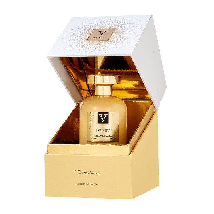 اکستریت پرفیوم Infinity روبرتو ویزاری یک رایحه شیرین و ملایم است که هم برای آقایان و هم برای خانمها قابل استفاده میباشد. این عطر دارای نتهای گلی، میوهای و چوبی است که در فصول پاییز و زمستان بیشتر پیشنهاد میشود. رایحه اینفینیتی روبرتو ویزاری در ابتدا با نتهای میوهای و مرکباتی شامل پرتقال، ترنج و هلو شروع شده و کم کم به سمت نت میانی شامل عطر گلهای لطیفی مانند یاسمن، رز و زنبق میرود. رفته رفته رایحه این عطر به نتهای پایانی خود نزدیک شده و بوی چوب صندل، مشک، وانیل و کهربا حس گرمای بیشتری به شما میدهد. در نهایت یک رایحه شیرین و ملایم اسپرت از این عطر باقی میماند که برای استفاده روزانه و مناسبتهای خاص قابل استفاده است.