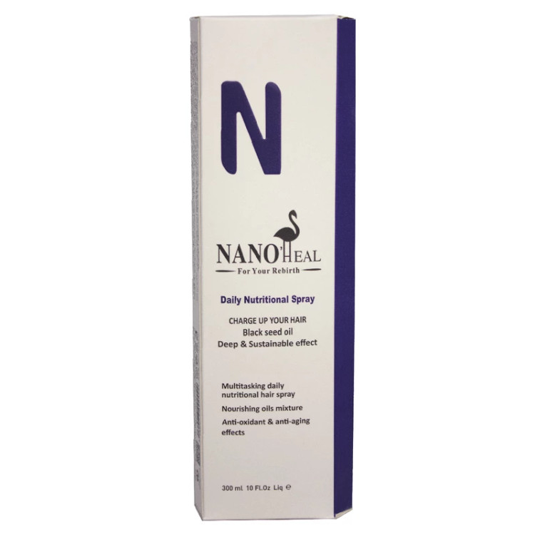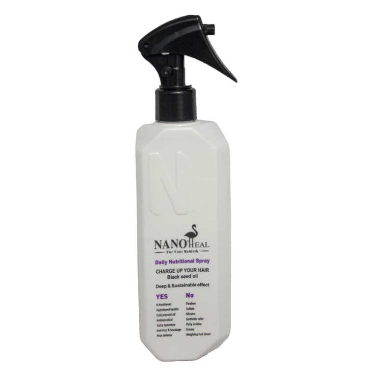 اسپری نانوهیل سیاهدانه غنی از ترکیبات مغذی برای داشتن موهایی سالم و درخشان حاوی پروتئین های هیدرولیز شده ابریشم و کراتین احیا و بازسازی کننده تارهای مو